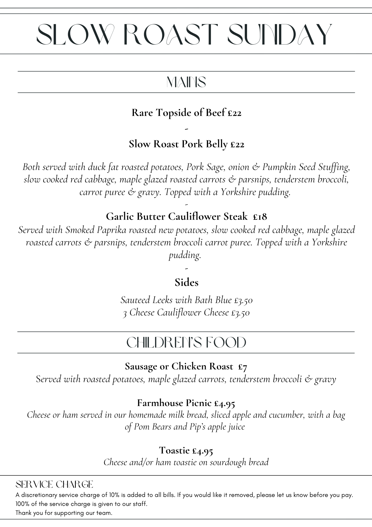 Our Sunday Lunch is a popular event and dishes are subject to availability, so we strongly recommend booking in advance to avoid disappointment.